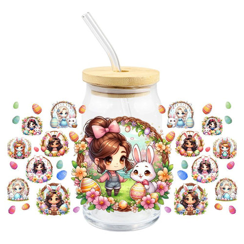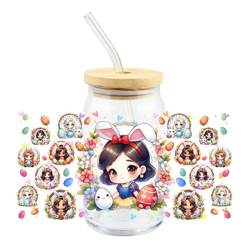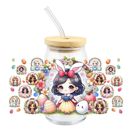 Easter Brown Hair Princess with Bunny - UV DTF 16 oz Cup Wrap