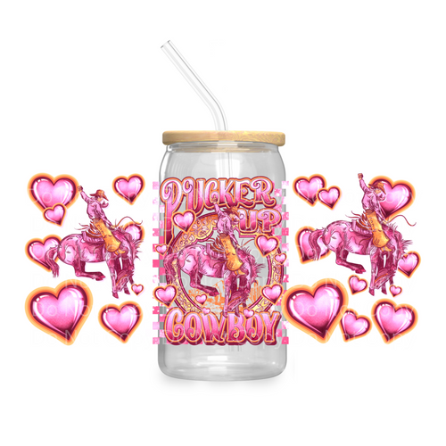 Pucker Up Cowboy valentine - UV DTF 16 oz Cup Wrap