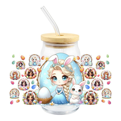 Easter Frozen Princess E with Bunny Ears - UV DTF 16 oz Cup Wrap