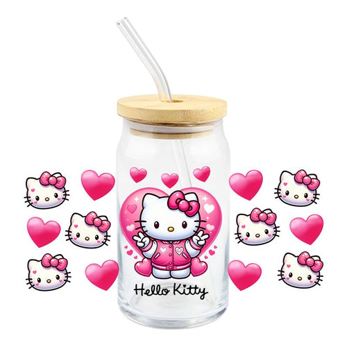 H Kitty Pink Hearts - UV DTF 16 oz Cup Wrap