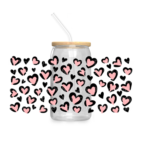 Pink & Black Hearts - UV DTF 16 oz Cup Wrap