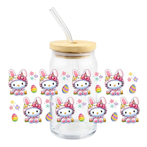 H Kitty with Bunny Ears & Easter Eggs - UV DTF 16 oz Cup Wrap