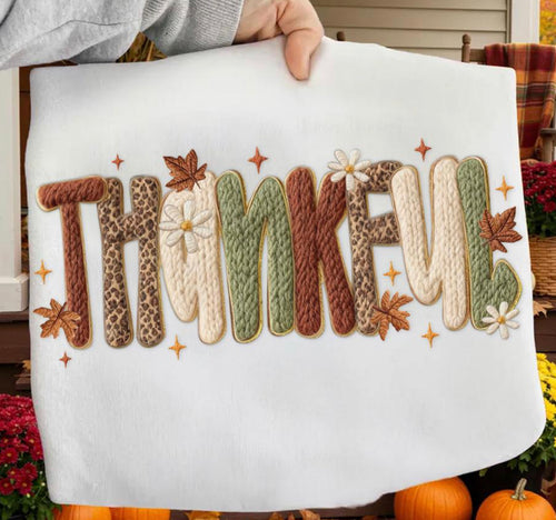 Faux Yarn Pastel Leopard Give Thanks DTF transfer